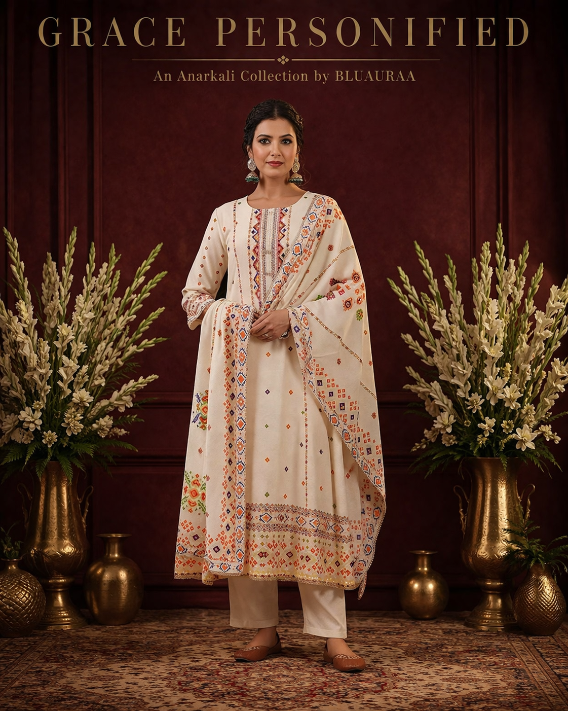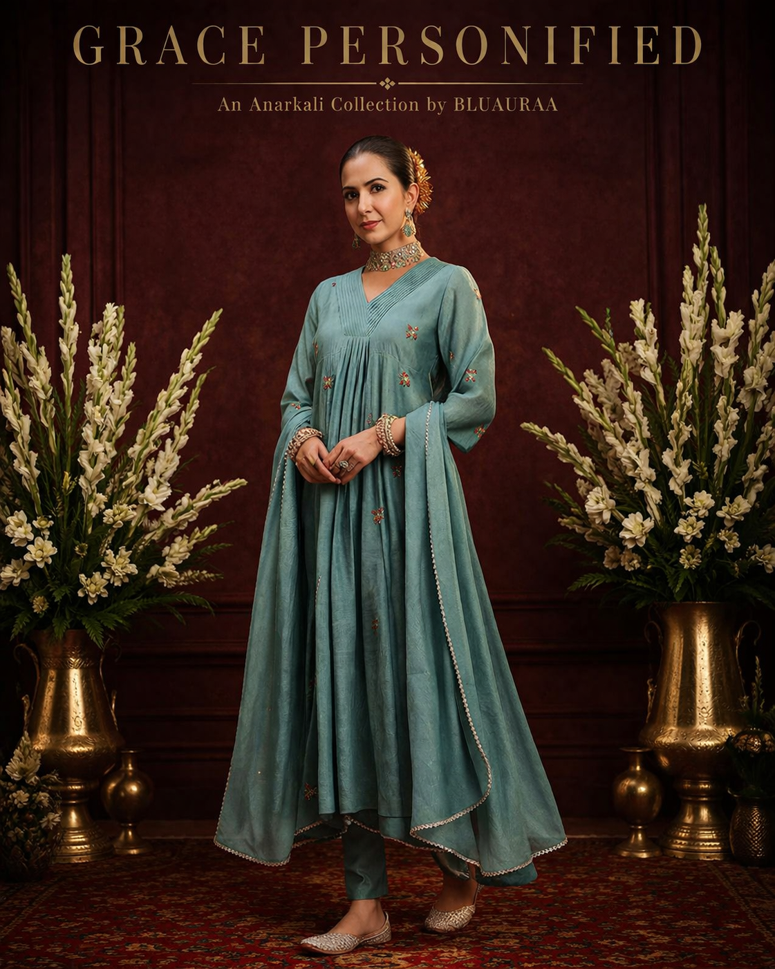Mul Chanderi Hand Embroidered Anarkali Suit